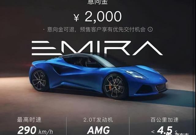 而此前,路特斯Emira已经开启预售,官方表示它是“燃油绝唱”,有意愿购车用户可付意向金2000元,在预售阶段支付意向金的消费者,在指定时间段内预售订单将转为正式订单。
