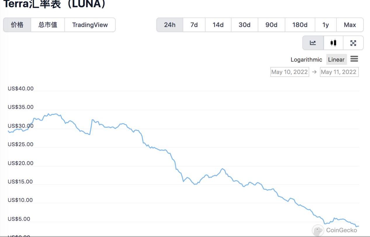 这也意味着,如果上述网友真的按照其评论所述,购买了1200枚LUNA币,即便是按照5月10日LUNA币最低价24美元计算,该网友在5月11日仍然面临高额损失,资产量将跌去85%。