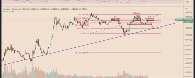 该范围与ETH/BTC的0.236-0.382斐波那契线或0.072BTC-0.077BTC定义的区域一致。因此,该货币对可能稳定在该区间内,随后向近期支撑位0.068-0.064BTC区域修正。