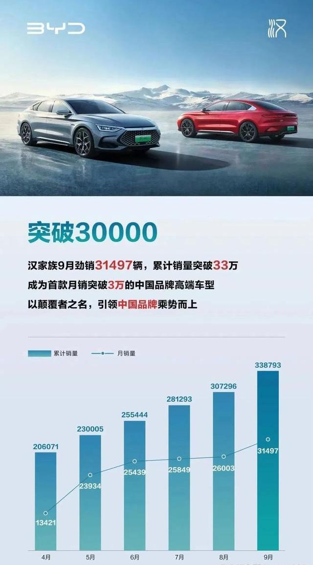 汉家族销量达31497辆,汉DM系列同比劲增625%;