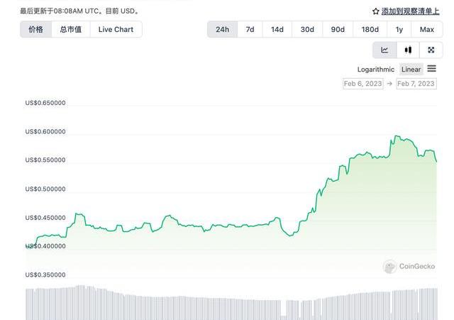 此外,还有与ChatGPT一样打着AI概念旗号的虚拟货币出现暴涨。定位于去中心化的人工智能平台和市场的SingularityNET,旗下代币AGIX代币最新报价为0.552755,24小时涨幅为36.3%,近30天涨幅达到897.6%;量数币MDT最新报价为0.06832,24小时内下跌8.7%,最近7天累计涨幅则为146.9%。