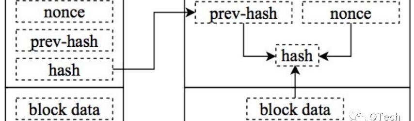 此时的nonce即为本次数学问题的答案,出块节点将当前区块的哈希、nonce值、前一个区块的哈希作为区块头部数据加入当前区块,如图3所示。然后将该区块广播到区块链网络中,等待验证通过后,出块节点就可以取到相应的奖励。