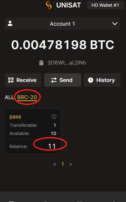 2、把transfer铭文发送给其他地址的操作步骤:再次打开Unisat钱包,点击brc20,再次点击transfer