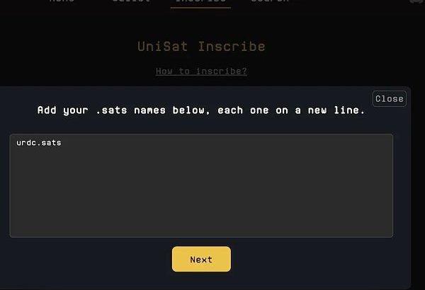 步骤2:在Inscribe选项卡添加你的.sats域名