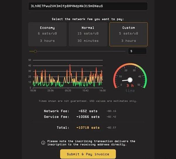 步骤3:输入你的比特币地址以接收BRC-20并选择网络费用