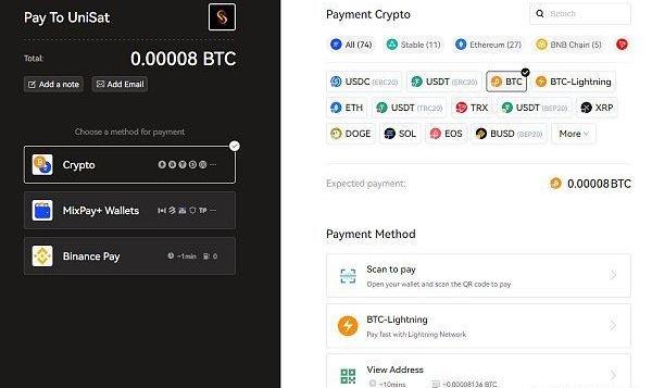 支持多种主流加密货币,包括各稳定币、ETH、闪电网络、TRX、DOGE等,其中BinancePay可以直接用USDT支付。