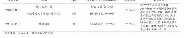 考核指标以2019年净利润为基数,2021-2023年净利润复合增长率均不低于25%,净资产收益率均不低于6%;以2019年研发投入为基数,2021-2023年研发投入复合增长率不低于20%。公司实施股权激励,利于充分调动员工工作活力,提升凝聚力,彰显中长期发展信心。