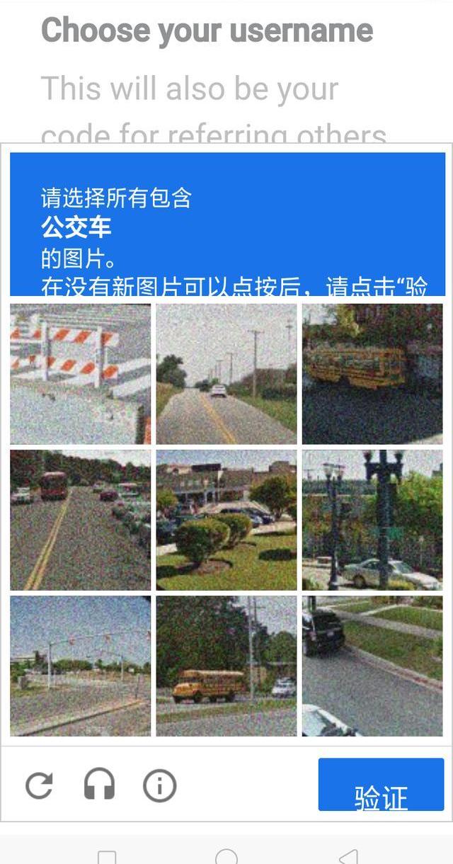 特别提醒:其他的步骤都很容易,piNetwork在最近app注册过程中,增加的“人机验证界面”会慢一点,要不断选择“红绿灯,消防栓,公交车”等等图片,反复并重复很多次就可以过关的哦,