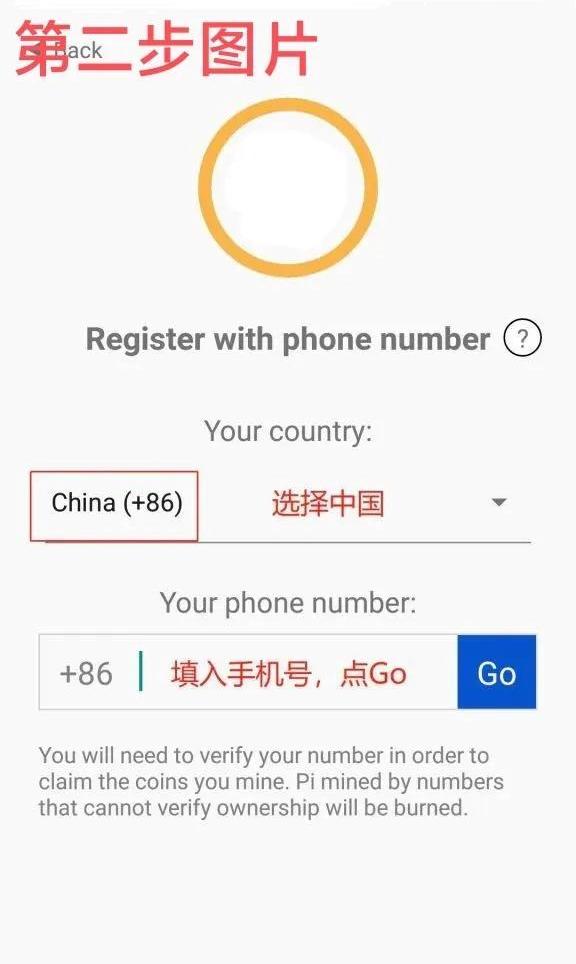 2.第二步:选择中国,后面是+86,输入自己的手机号,手机号千万不要输入错误不然后面认证不了,输入手机号,点击Go。
