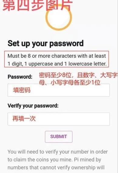 4.第四步:设置密码和确认密码,两遍密码输入完成后,密码设置需要数字和字母,而且字母需要有大小写,点击SUBMIT