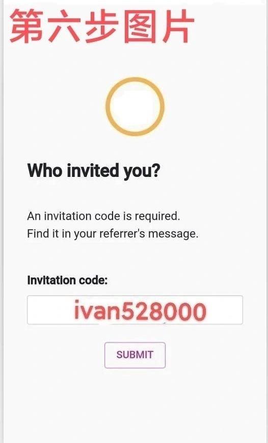 6.第六步:填入邀请人邀请码ivan528000之后点击SUBMIT