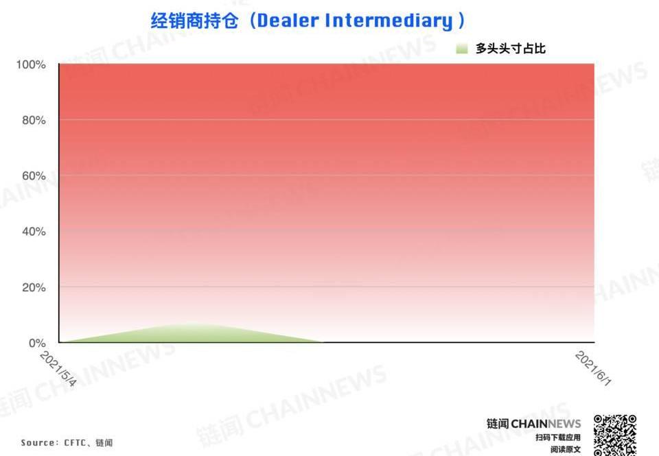 分项数据上来看,规模最大的经销商持仓多头头寸自6张下降至0张,空头头寸保持0张不变,多空双向持仓自38张下降至0张。经纪商账户在最新统计周期内清空了此前持有的所有头寸,不过考虑到此前持有的仓位有限,因此这种调仓并不存在过多解读的价值。