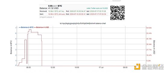 虽然黑客并没有直接给出比特币地址,而是通过私信的方式将地址发送给想要加入付费群组的人。该地址(1Ai52Uw6usjhpcDrwSmkUvjuqLpcznUuyF)直到攻击被曝光时,总共收到7.4BTC(约67654美元),于2020年07月17日将余额清零。