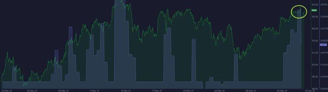 例如,以比特币的融资率为例。几天前的记录为+0.10%,非常接近几周前的0.12%的水平。后者在3月份的历史最高价时出现,随后价格大幅下跌。