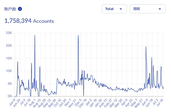 Terra的用户数上升至175.8万。过去6个月,Terra的用户数平均每月增长10.57%。