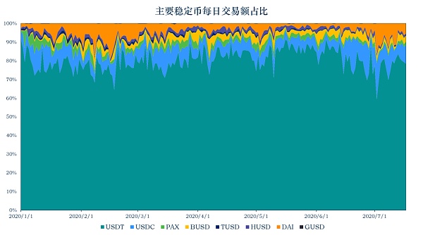 上周,主要稳定币平均每日的交易额平均下降3.2%。