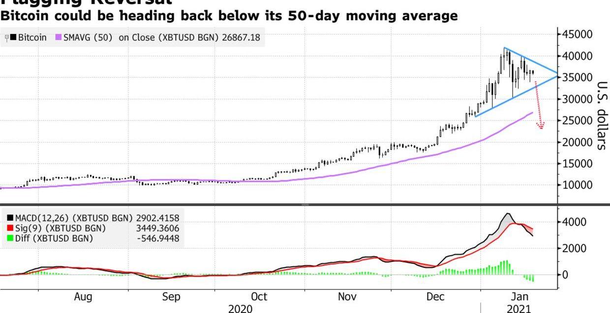 比特币可能会跌回50日移动均线以下