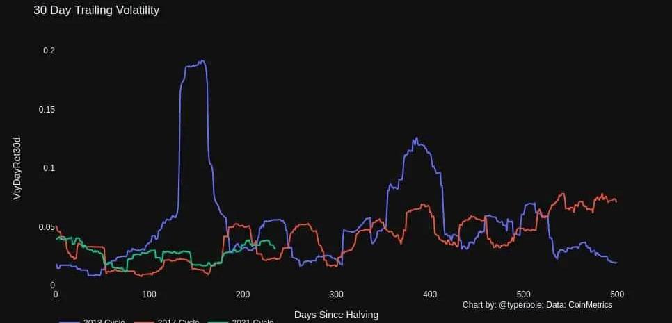 当谈到备受争议的比特币波动时,这位分析师指出,该资产的当前表现与2017年的数据非常相似,但远低于2013年的数据。此外,他说,在最近的反弹中,“到目前为止,我们还没有真正经历过很大的下行风险”。
