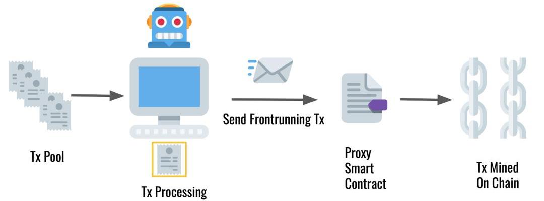 通常,Frontrunning是在一个已知的未来事务发生之前,在执行队列中第一个获取事务的行为。