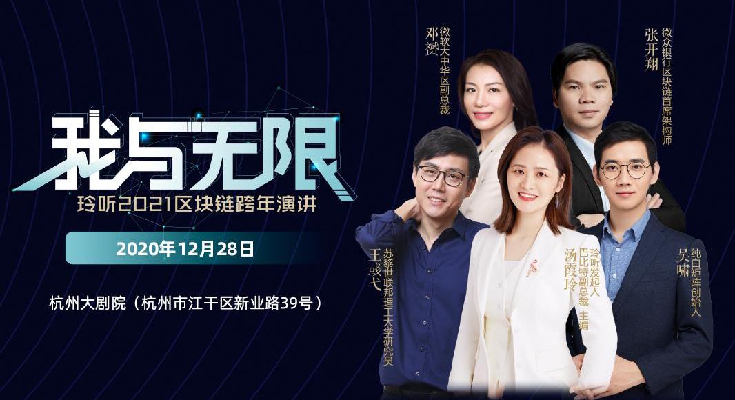 12月28日19:00,在这新旧交替之际,“我与无限——玲听2021区块链跨年演讲”将在杭州大剧院重磅开启。巴比特副总裁/主编、《玲听区块链》发起人汤霞玲将站上舞台,在1个多小时的演讲中,她将以《我与无限》为主题,从一个行业深度参与者、观察者的角度出发,总结2020,展望2021。