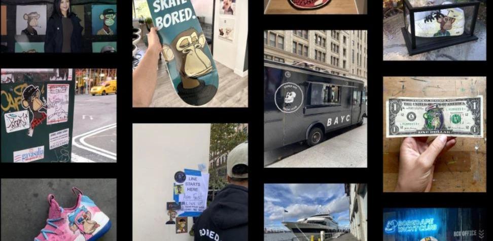 于是大量延伸的作品很快诞生了。穿的、玩的、看的、甚至是还有吃的,涵盖娱乐、音乐、时尚、游戏和虚拟世界在内的多个领域。团队还资助其中使用猿猴?IP?的创业者,鼓励他们发挥创造力,扩大品牌影响。而这种自下而上的方法,让每个使用猿猴形象做自己商业产品的人同时参与?Yuga?的品牌建设。一众社区成员都在通过各种方式给这个社区和品牌赋能,就像一个社区版的?Supreme,创造着自己的文化。