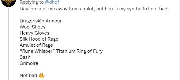 例如,一位名叫RoninImperial的推特用户无法参与官方铸造,但他参与创建了一个合成Loot: