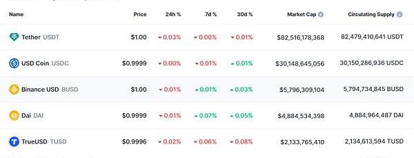 截止5月10日,排名前5的稳定币市值为1254亿,较4月数据持平。