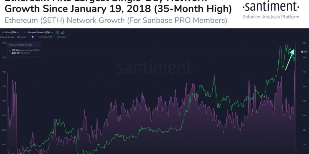 根据Santiment的报告,以太坊地址创下了单日最高峰值,因为在过去24小时内创建了超过17.7万个地址,这是一个非常积极的指标,自2018年1月以来从未出现过。