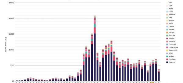 6、合规中心化交易所的现货交易额在四月份下降了43.8%,达到约4005亿美元,之所以会出现如此大幅度的下跌,很大程度上是因为币安恢复收取比特币交易对费用。