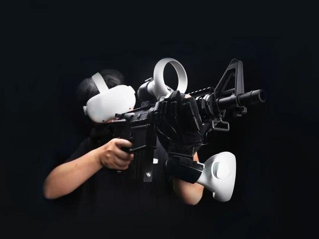 你可以把它视为1:1复刻的M4卡宾模型,肩托、弹匣、扳机一应俱全。将两个VR手柄组装在上面之后,就能在游戏世界中大杀四方了。为了提升真实手感,设计师甚至为它加入了力反馈模块,可以模拟出开的后坐力。与SteamVR头显一起使用的话,能够和数十款战类游戏完美兼容。值得一提的是,它的弹匣实际上就是可拆卸电池组。相较于传统手柄,这个手办级外设显然要带劲得多。