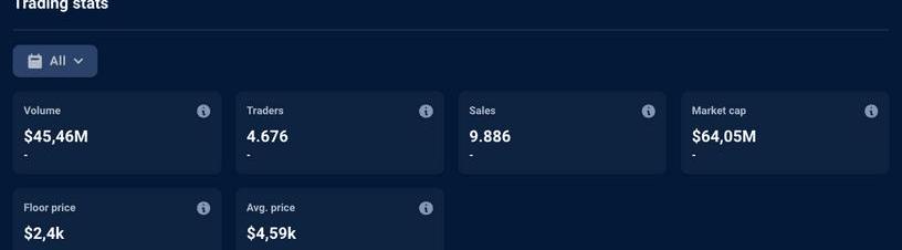 MAYC在过去两个季度中拥有第二高的交易量,平均售价为22,495美元。该NFT的交易者平均交易5.72笔。
