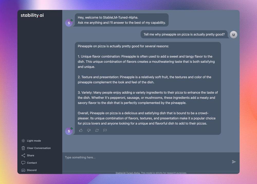 据StabilityAI称,会进一步开发StableVicuna,并且会很快在Discord上推出。