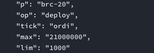 用以定义铸造限制的「lim」的字段被删除,因为?BRC-21资产均需遵循严格的铸造和赎回规则,因此无需限制单笔交易中可以铸造多少代币。