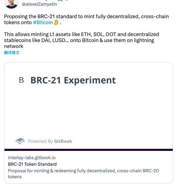 5月7日,跨链互操作性项目?Interlay的创始人AlexeiZamyatin提议推出BRC-21标准,以向比特币网络上引入完全去中心化的跨链资产,并在闪电网络中使用它们。