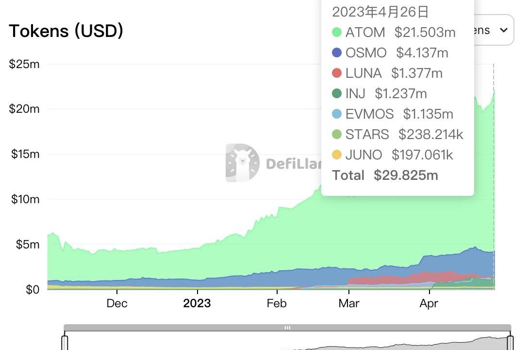 TVL:目前?Stride?的?TVL?为?2983?万美元,主要为?2150?万美元的?ATOM。