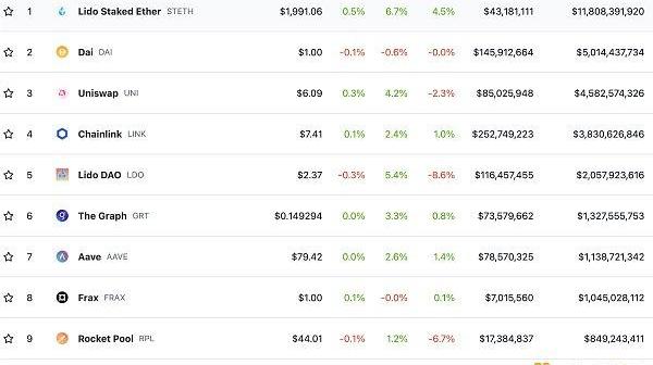 DeFi项目锁定资产前十排名及锁仓量数据来源:defillama