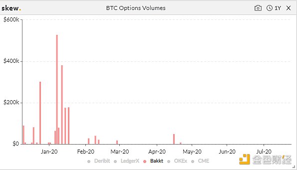 自4月23日起,Bakkt的比特币期权交易量已经近3个月为0了。