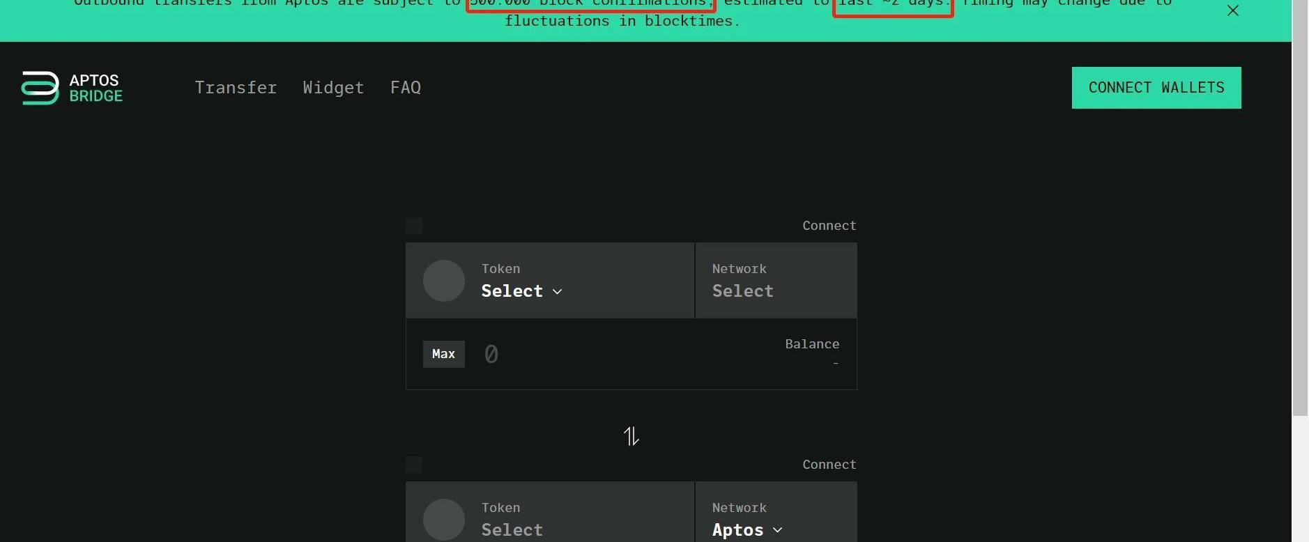 还有?LayerZero?和?LiquidswapDEX?合作开发的?AptosBridge?跨链桥,资产进入?Aptos?容易,退出难,用户充值资产到?Aptos?只需几分钟,但是从?Aptos?提款至其它链至少需要?50?万个区块确认后才能完成,大概需要等待?2-3?天,在早期甚至需要?100?万个区块确认。而同样支持?Aptos?生态跨链的?Wormhole?和?Celer?退出时间是即时的。尽管官方表示是基于安全性的考虑,但在这个效率为王的年代,时间慢就是最大的致命伤。
