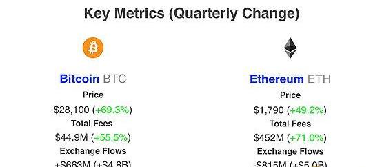 尽管自硅谷银行倒闭和美联储的“打压”以来,ETH一直落后于BTC,但ETH凭借49%的季度涨幅依然超过了许多加密资产。