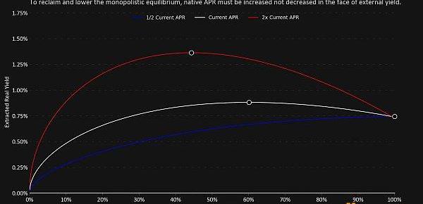 我发现,一种分析这个反馈循环的有效方法是将各个链的质押者想象成一个或一小群垄断性行为者,然后计算他们可以从非质押者那里提取的最佳实际收益,以及他们为实现这一目标而锁定的供应份额。
