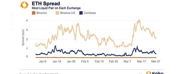 流动性在加密货币中是最重要的,特别是对于那些建立或出售大量头寸或频繁交易的机构。在这方面,Binance再次取得了很好的成绩,截至本文写作时,其利差比Binance.US收紧了36倍,比Coinbase收紧了8倍。不出所料,Binance的BTC-USDT和ETH-USDT的价差可以说是最小的。