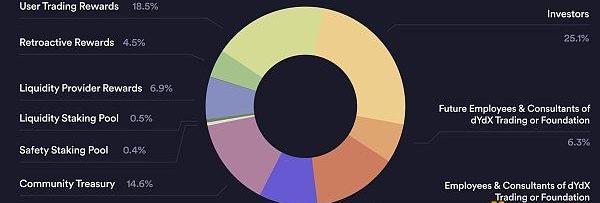 其中,DYDX总供应量的50%在5年内分配给社区,其余50%分配给早期投资者、协议开发者、社区成员和国库等。但是目前只能将把重点限制在社区分配比例上,因为这是唯一可以改变的事情。