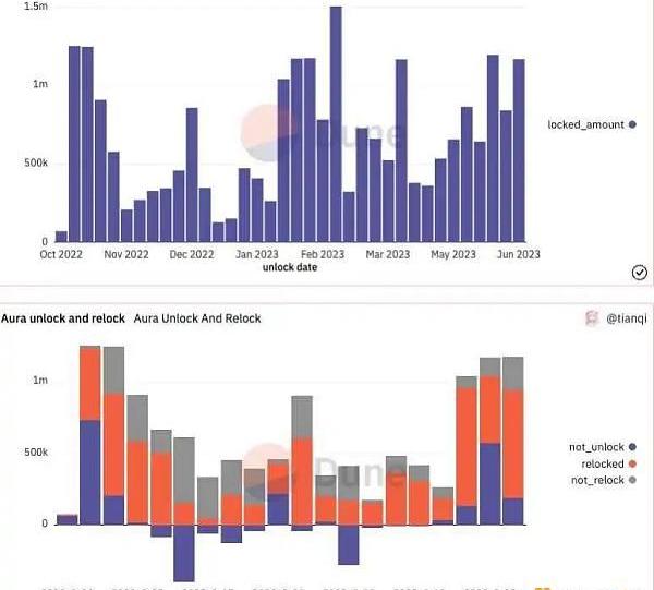 最近的解锁的vlAURA的70-80%都进行了再次锁定,几乎没有卖出。像Gnosis、Badger和Messi这样的大户都是长期持有的,他们每几周都会不断累积锁定AURA。