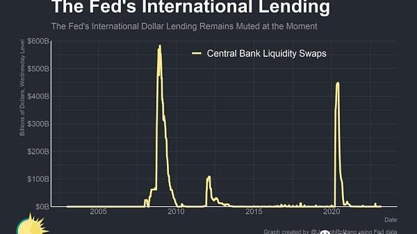 通过美联储的美元互换额度(外国央行可以用来向外国银行发放以美元计价的贷款的工具)借入的资金也不多。尽管瑞士信贷(CreditSuisse)等外国金融机构最近的疲软可能很快就会要求使用互换额度,但目前这种互换额度的停用意味着,危机迄今为止主要被控制在美国境内,美联储紧急资金的主要接受者是从贴现窗口借款的美国银行。