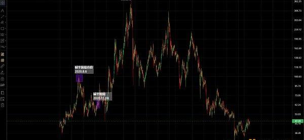 2021年5月10日,LTC达到顶点$413,BTC是在11月9日,达到顶点$67,549;2022年6月14日,LTC达到最低点$40,BTC是在11月21日达到最低点$15,476,LTC的顶点和底部中间隔了400天。