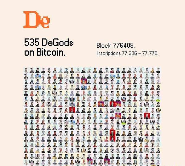 指ETH和Solana上的蓝筹项目来比特币网络上发行的NFT项目,比如YugaLabs的「TwelveFold」还有DeGods的比特币版本。