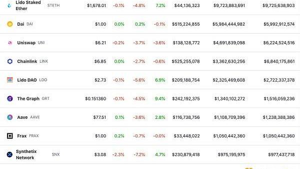 DeFi项目锁定资产前十排名及锁仓量数据来源:defillama
