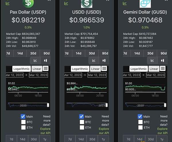 6.还有一些类似的中心化稳定币USDP,GUSD等就没那么幸运了,也出现了脱钩。
