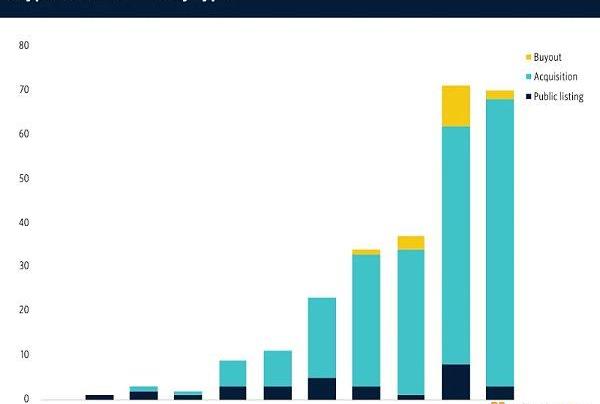 从退出策略来看,2021年和2022年分别有约70个主要加密货币风险投资股权退出。虽然2023年的退出策略有所下降,但长期趋势是明显的。这个行业将会持续存在。