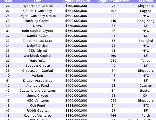 按基金规模排名的顶级加密货币风险投资公司;